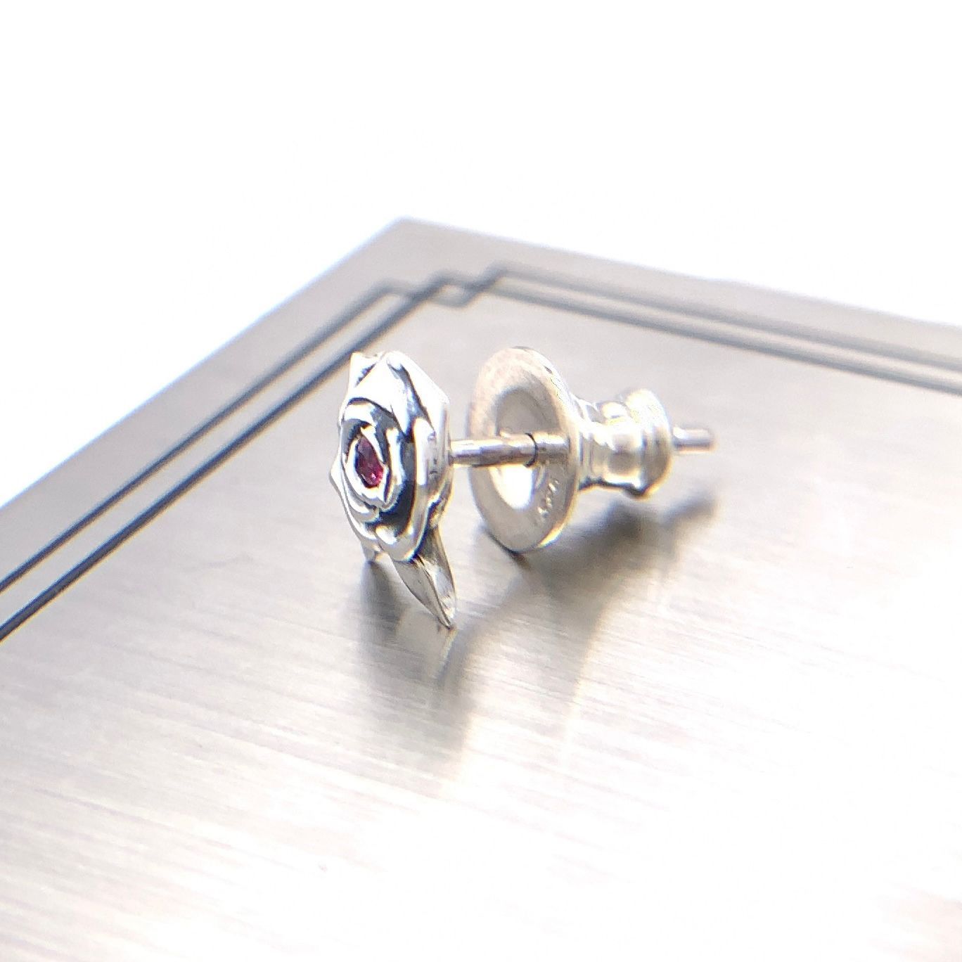 薔薇ピアス ルビー シルバー925ピアス メンズ片耳ピアス セカンドピアス シルバー メンズ 彼氏プレゼント プレゼント snd 107