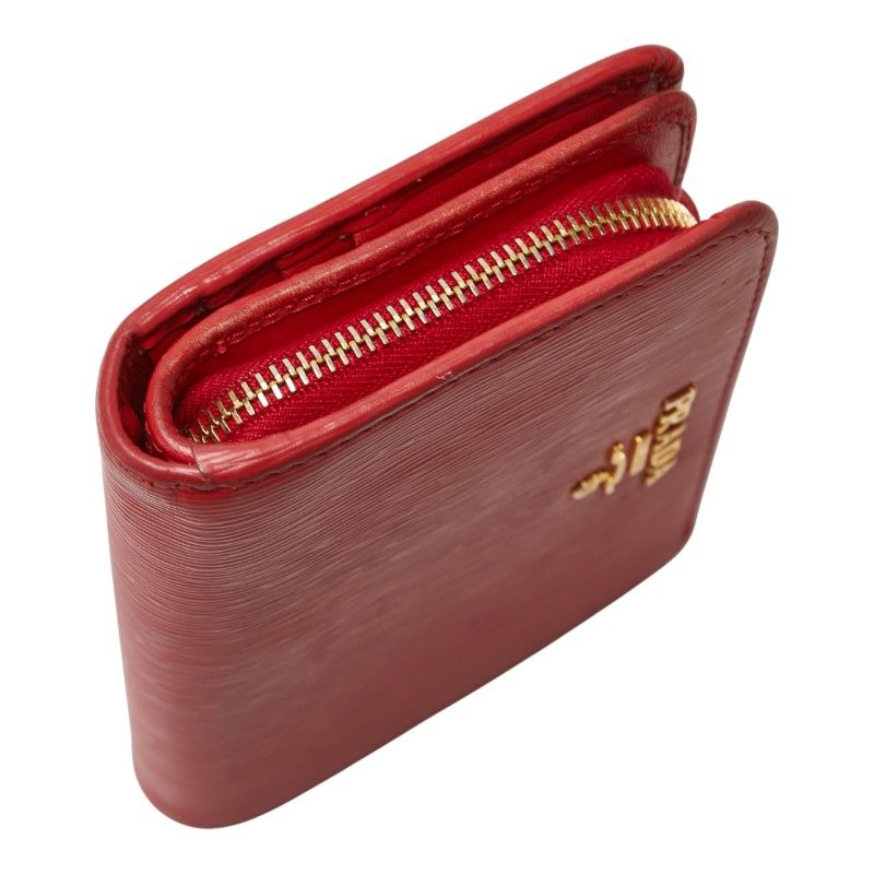 プラダ L字ファスナー 二つ折り財布 レッド レザー レディース PRADA 228-34631