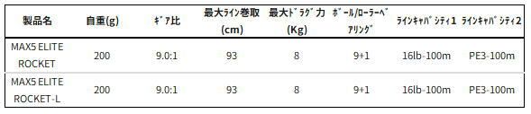 MAX5 ELITE ROCKETは、ZENON、Revoと受け継がれてきたエルゴノミックデザインコンセプトを33mm径に継承しつつ、ギア比9、最大ライン巻取り量93cmのロケットギアリールです。ピンロック式サイドプレート搭載でサイドプレートの落下を防ぎます。ドラグクリッカー付きカーボンマトリックスドラグシステムを採用し、滑らかなパフォーマンスを実現。