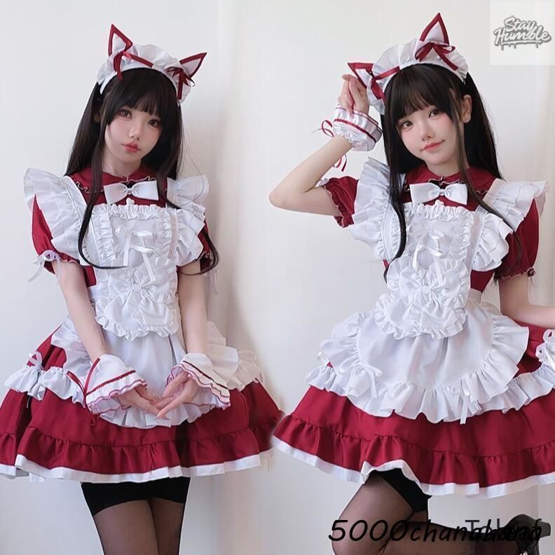 メイド服 コスプレ メイド コスプレ衣装 レディース エプロン リボン 兎カチューシャ 大人ロリータワンピース 5点セット フリ