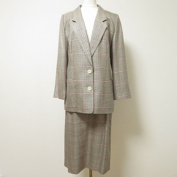 ◎商品名(タイトル):#anc レリアン Leilian スカートスーツ セットアップ グレー ベージュ 赤 シルク混 グレンチェック レディース [965603]