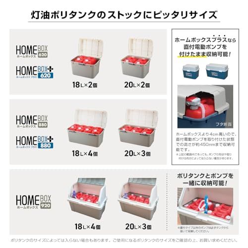 ポリタンクと一緒に、高さのある給油ポンプも立てたまま収納できます。