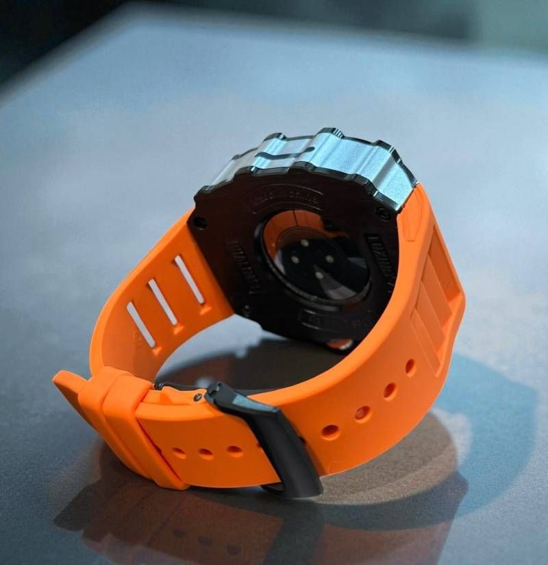 シルバーケース オレンジラバー 別注強化型ブラックバックルモデル アップルウォッチ カスタム カバー 保護 46 series 10 11 ベルト