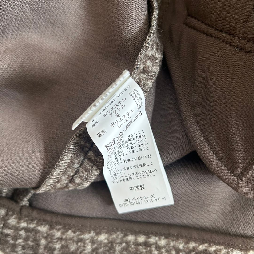 表側:ポリエステル53%、アクリル34%、毛13% 裏側:ポリエステル70%、レーヨン30%