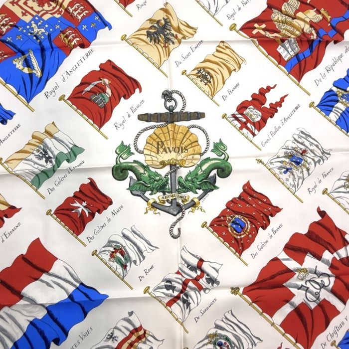 エルメス HERMES スカーフ カレ90 旗 おしゃれ シルク ホワイト ブルー レッド イエロー グリーン