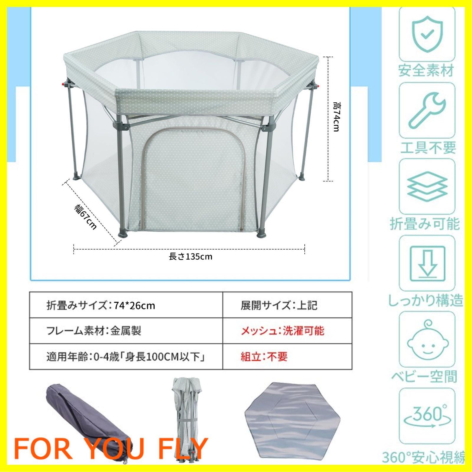 ZOOBLY ベビーサークル 折りたたみ マット付き 扉付き プレイヤード メッシュ 六角形 コンパクト 洗える たためる 省スペース 持ち運び便利 収納バッグ付き ベビー用品 赤ちゃん リビング 寝室