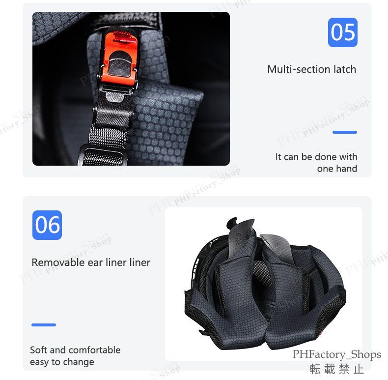 換気システム:空気循環がより快適になり、3つの通気口が蒸れの問題を簡単に解決し、軽い空気の流れがドライバーを涼しく快適に保つのに役立ちます。騒音を低減する空力設計。