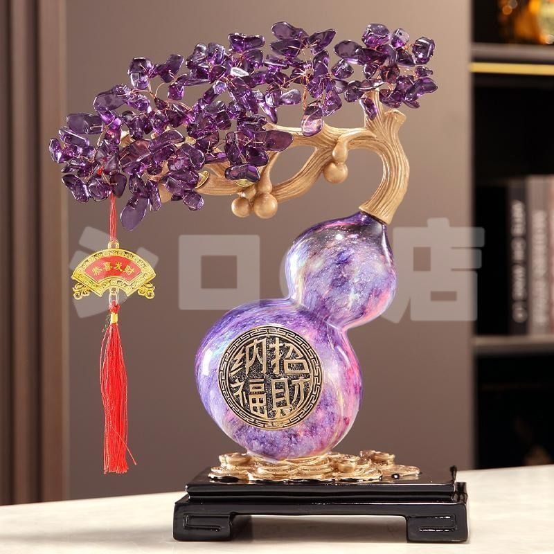 この美しい「金のなる木」のオブジェは、瓢箪から生えた紫色のクリスタルツリーを模したデザインで、非常にユニークで魅力的な存在感を放ちます。瓢箪は、古くから日本や中国で「福」を呼ぶ象徴とされ、豊かさや繁栄、長寿をもたらすと信じられています。また、金のなる木は、財運や商売繁盛を象徴するアイテムとして、風水でも重要視されてきました。特に、この紫色のクリスタルは、平穏な心と豊かなエネルギーを引き寄せると信じられており、ポジティブな変化を促す力があると考えられています。