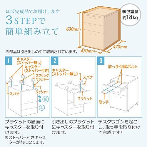 サンワダイレクト デスクワゴン 木製 キャスター付き 3段 A 4対応 幅40×奥行43.2×高さ60 cm チェスト キャビネット ブラウン 100-
