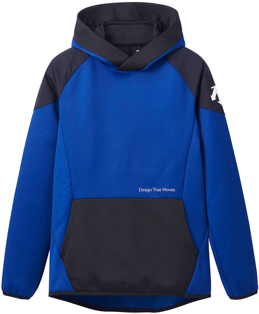 保温性とストレッチ性を両立し、しなやかな素材感が特長のニットを採用したウォームスウェットです。肩部分は防風タフタで切り替えています。フード裏のプリントがデザインアクセントです。移動、トレーニングシーンなど、プレーシーン以外でも着用できるアイテムです。