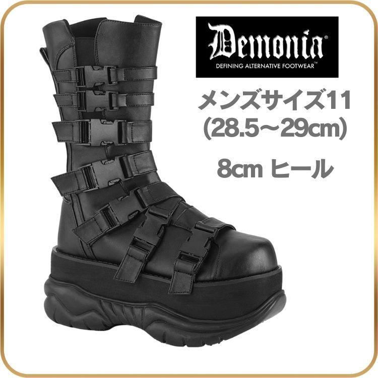 28.5 29 cm demonia デモニア 厚底 ブーツ ショートブーツ ミドルブーツ 8 ヒール 黒 ブラック つや消し 厚底ブーツ メンズブーツ バックル ストラップ ベルト ジッパー 厚底靴 V系 ゴスロリ ゴス パンク 原宿系