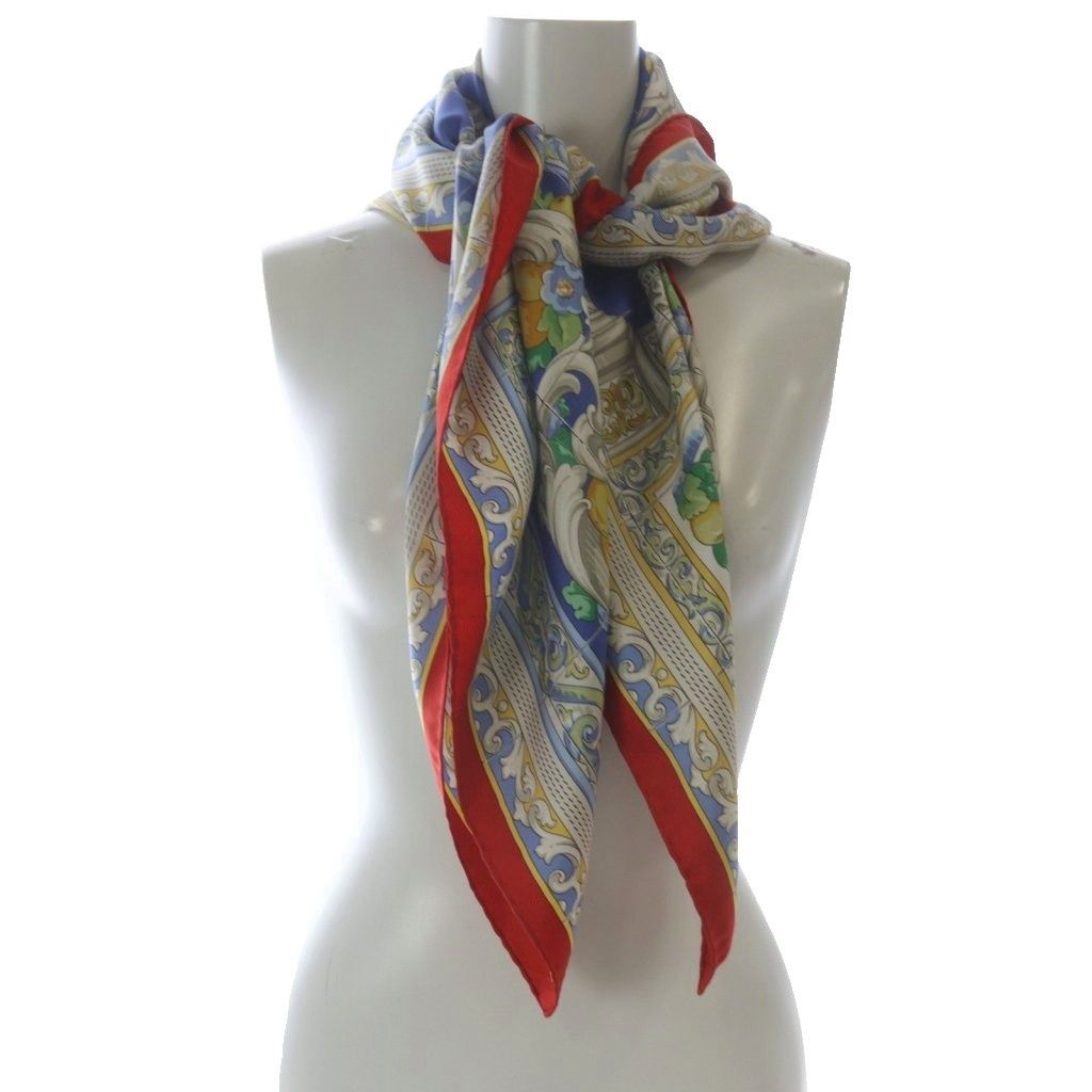 ロエベ LOEWE シルク 総柄 スカーフ 赤 レッド 白 ホワイト
