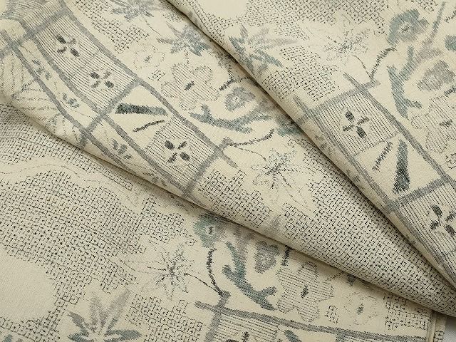 平和屋着物 本場結城紬 重要無形文化財 100亀甲 屏風草花文 正絹 vf