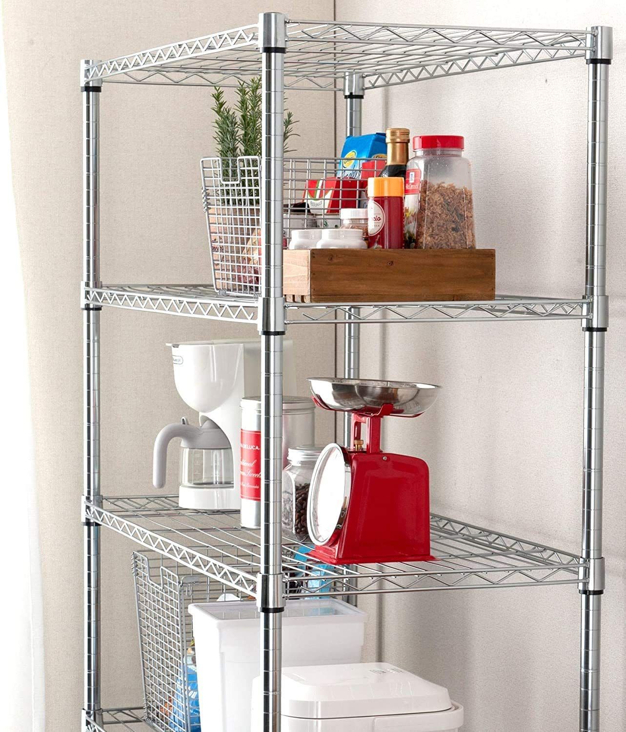素材:シェルフ(棚)・ポール:スチール(クロームメッキ)、スリーブ:ABS樹脂
