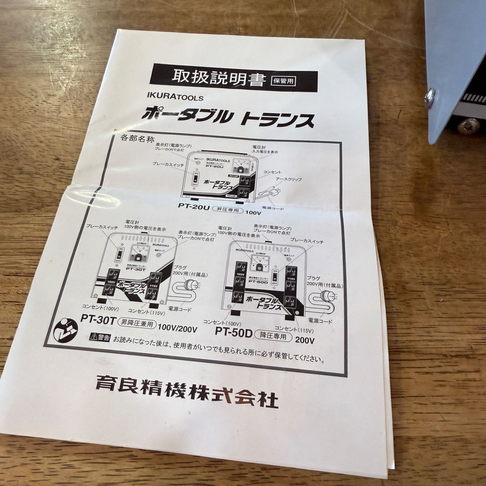 育良 イクラ PT 20 U ポータブルトランス 昇圧 AC 100 V 2