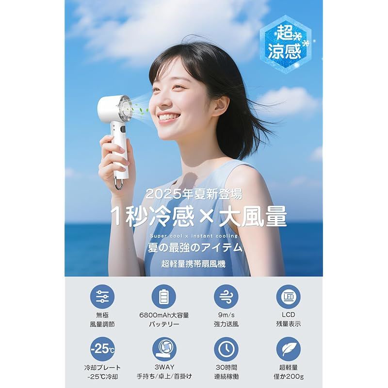 商品名:ハンディファン 冷却プレート付き 携帯扇風機 【2025新登場 &1秒瞬間冷却】 冷却ファン 6800mAh大容量 usb充電式 ミニ扇風機 強力 100段階調節 軽量 折り畳み式 首掛け/卓上/手持ち対応 LEDディスプレイ 熱中症対策 スポーツ観戦/通勤/