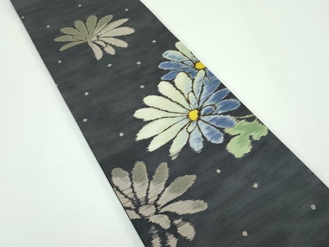 平和屋着物 上 両面 半幅帯 紬地 菊 間道 墨色地 s 5