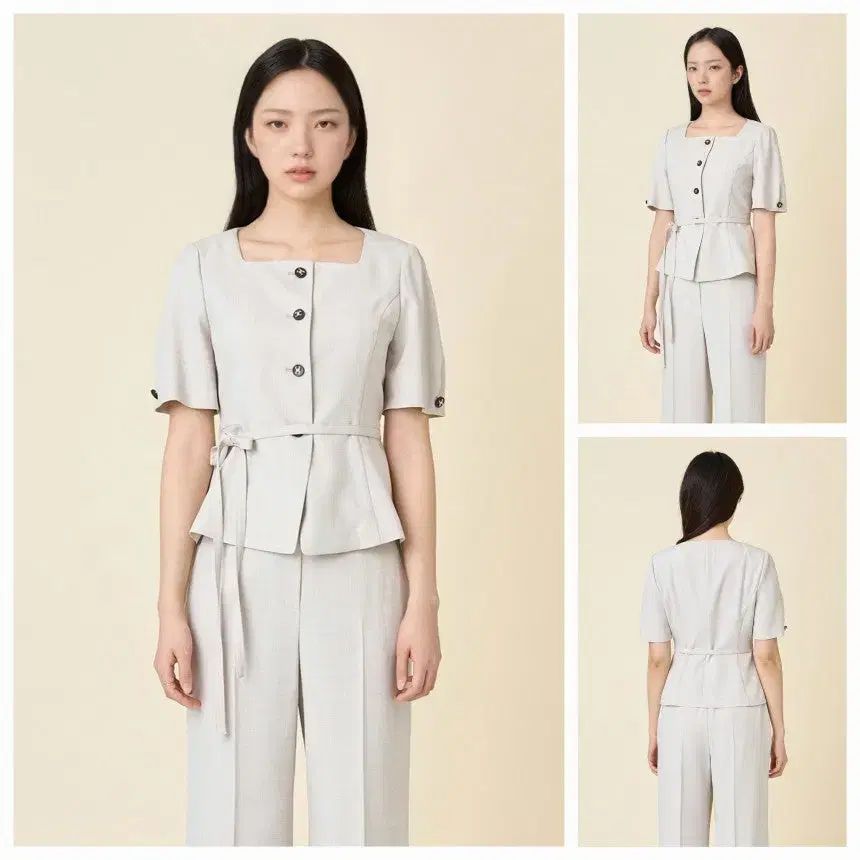 ラインアクション 25 年 ナイスフィット スクエアネック ベルト付き ジャケット パンツ セットアップ