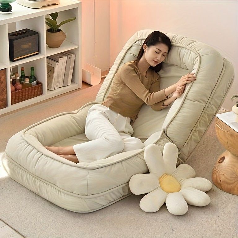 * **快適な座り心地と寝心地:** ふわふわのクッションが付属しており、ソファとしてもベッドとしても、リラックスできる快適な座り心地と寝心地を実現します。