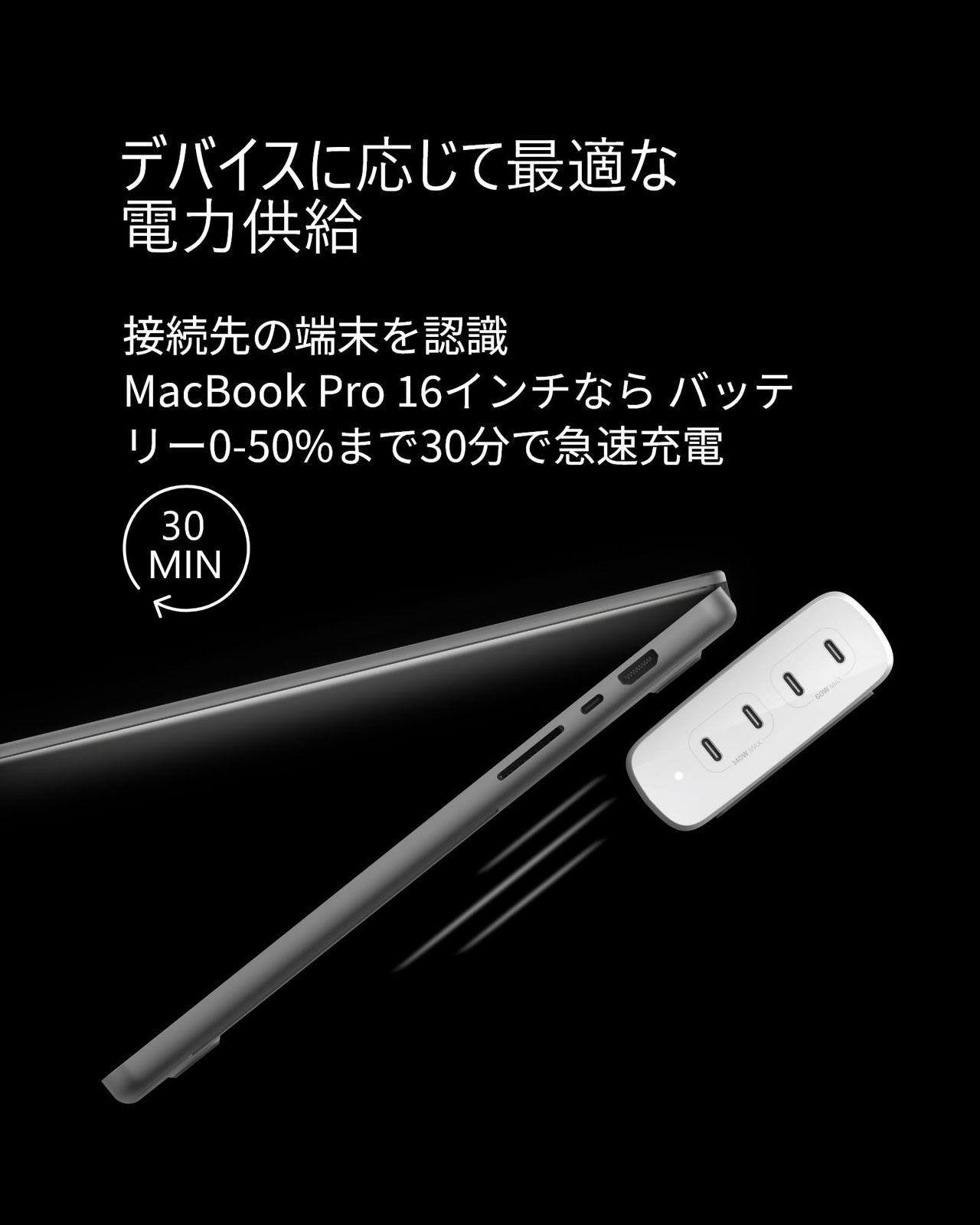 【スマートなデスク環境を構築】 合計最大200W出力で高出力PCの充電からスマホの充電までこれ一つで。また電源ケーブルは着脱式で、取り外して整理することで、すっきりとしたデスク環境に
