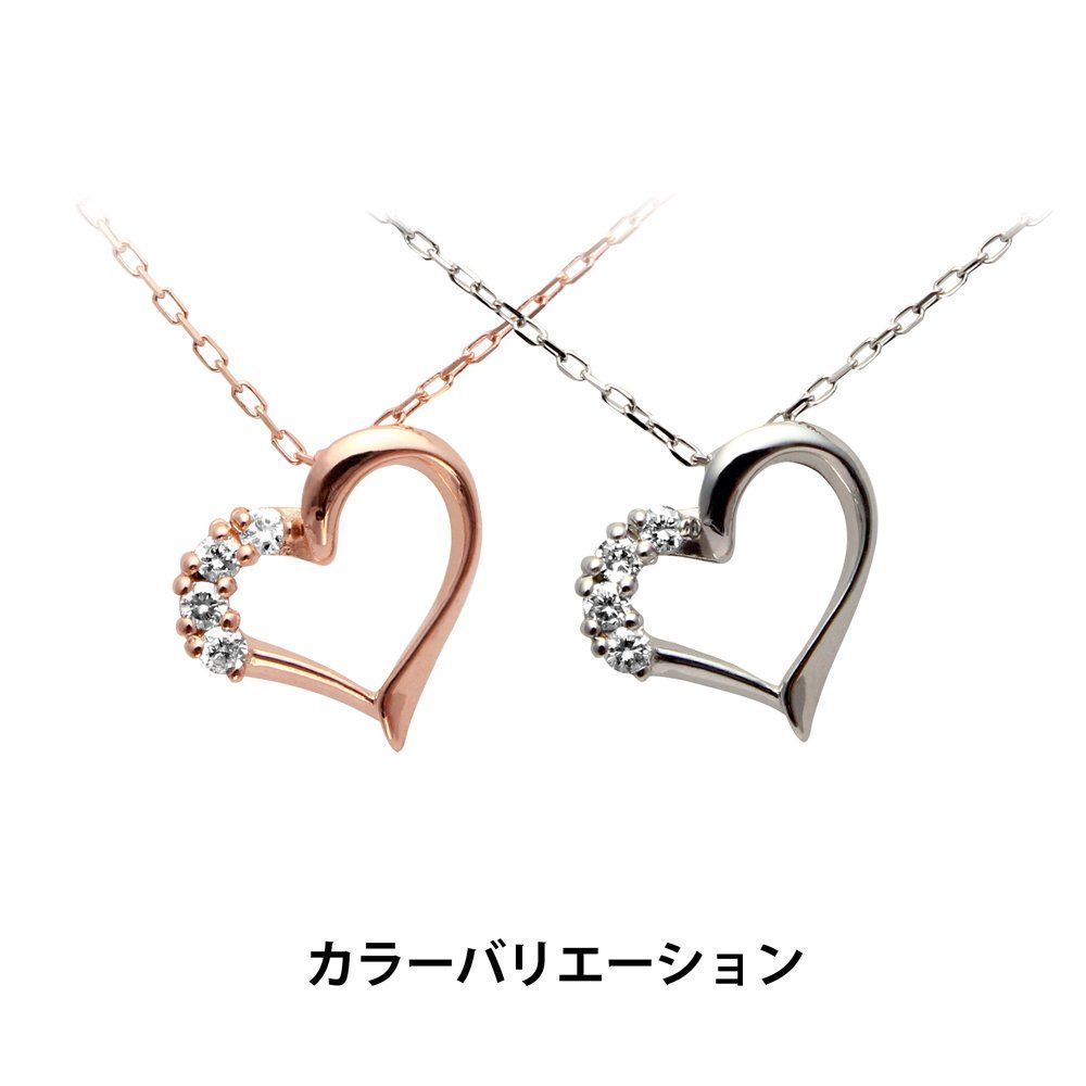 女性に人気のデザイン!!オープンハートにアレンジを加えた、すっきりスタイリッシュなプチネックレスです。すっきりとしたラインのオープンハートは甘いだけじゃない、洗練された印象を与えます。キラリと光るダイヤモンドがアクセントになって、上品な大人の可愛らしさを演出します♪