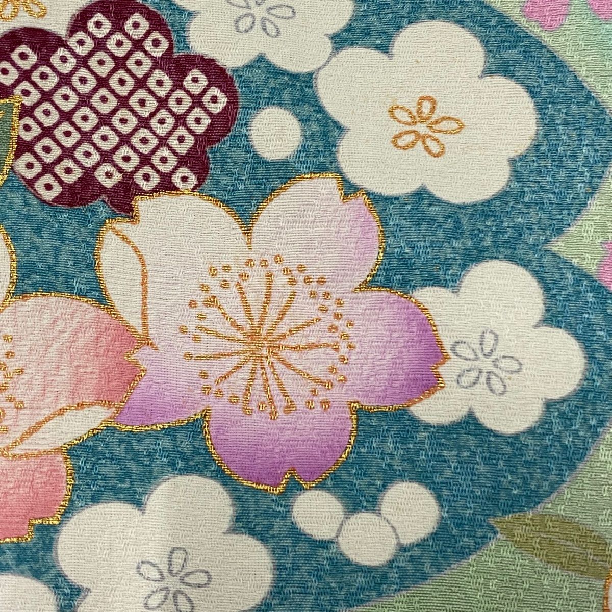 振袖 身丈163 cm 裄丈69.5 L 袷 桜 波 金糸 金彩 青緑 正絹