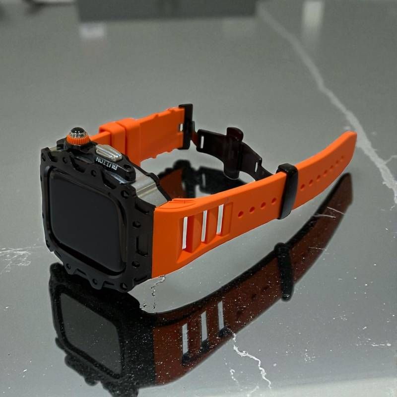 アップルウォッチケース フォージドステンレス ラバー 互換性対応 カスタム カバー 保護 ギフト 46mm ベルト バンド セット series 10 11 メンズ レディース 贈り物 オレンジブラック