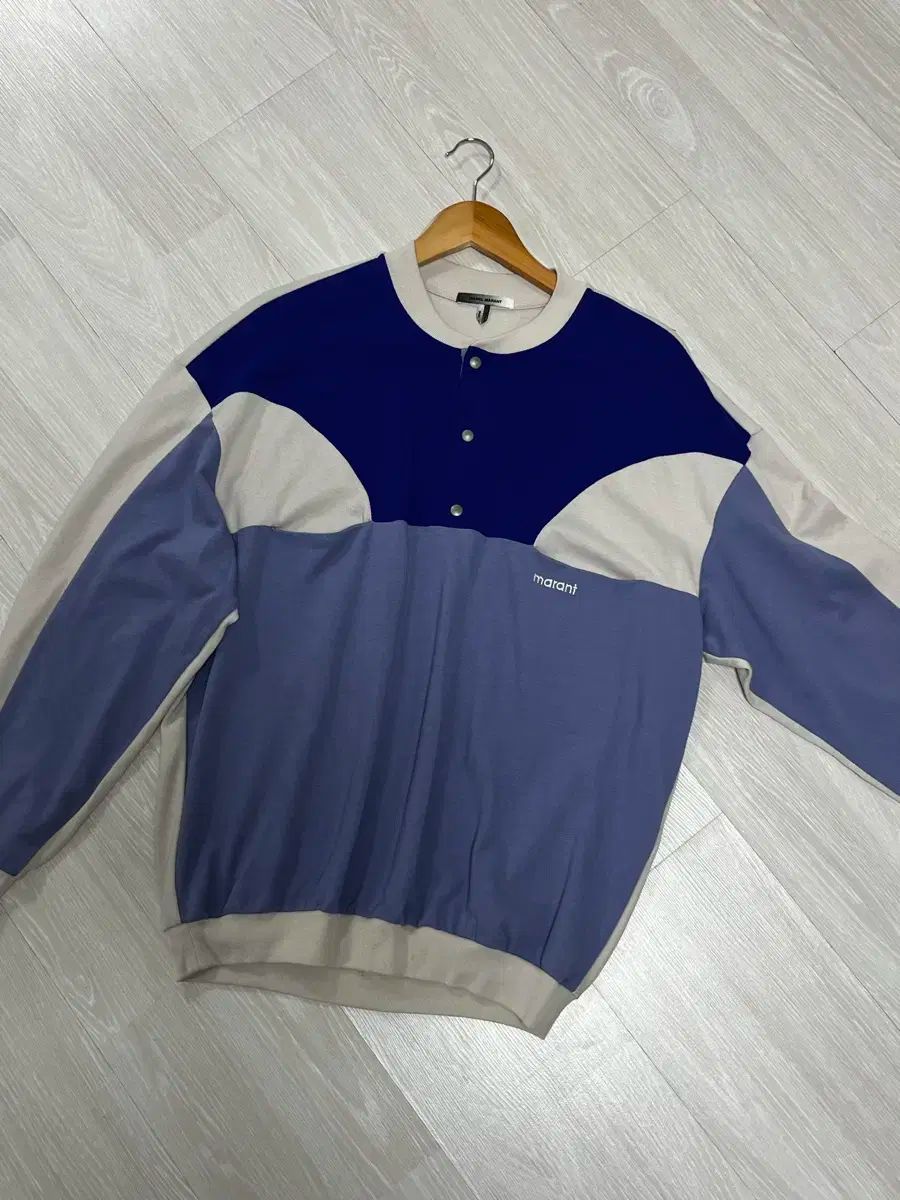 イザベル・マランによる青い配色のスウェットシャツです。独特な色の組み合わせが際立つ商品です。ボタンのディテールでアクセントを加えました。ご不明な点がなければ、すぐに安心してお支払いいただけます!
