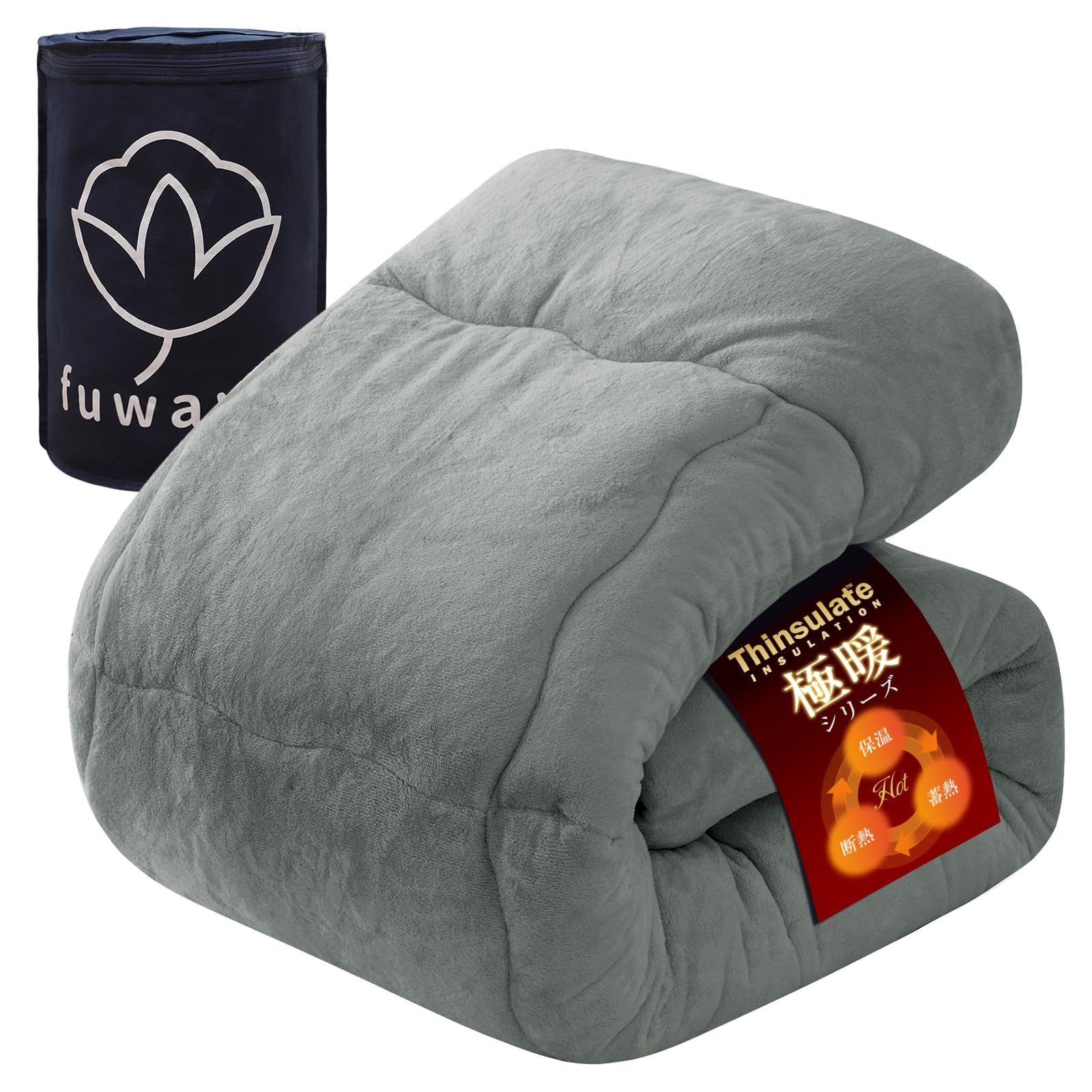 Size シングル_Color ライトグレー fuwawa 掛け布団 シングル 冬 シンサレート 掛け毛布 アルミシート入り4層構造 フランネル 軽くてあったか 高保温 断熱性 中綿素材シンサート使用 従来商品よりも2倍の保温機能 静電気防止 抗菌防臭防