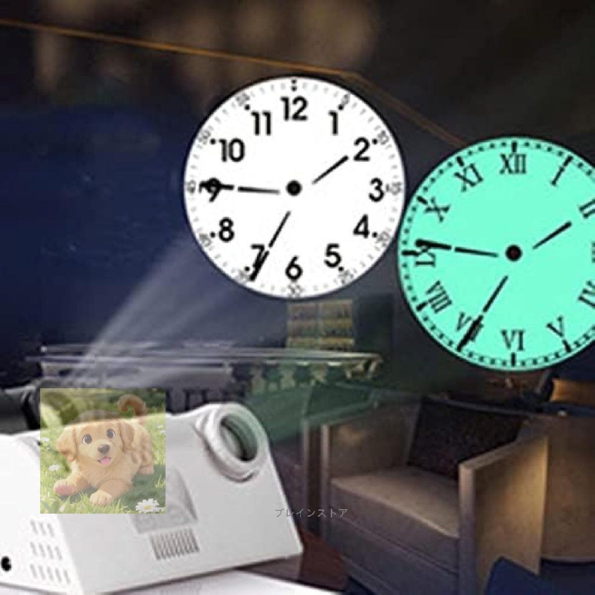 LED投影ローマ時計カラフルな投影アナログ時計回転180°調整 なプロジェクターリモコン付き ブラック