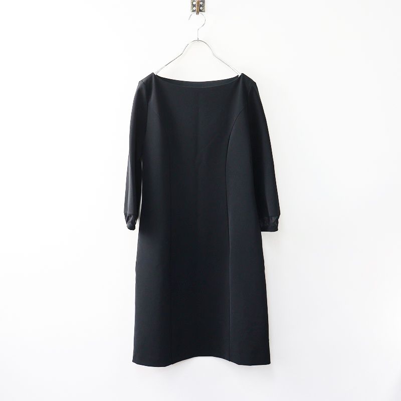 フォクシー ニューヨーク FOXEY NEWYORK ストレッチ アールデコワンピース シアー袖口 38 ブラック┃ベーシックドレス