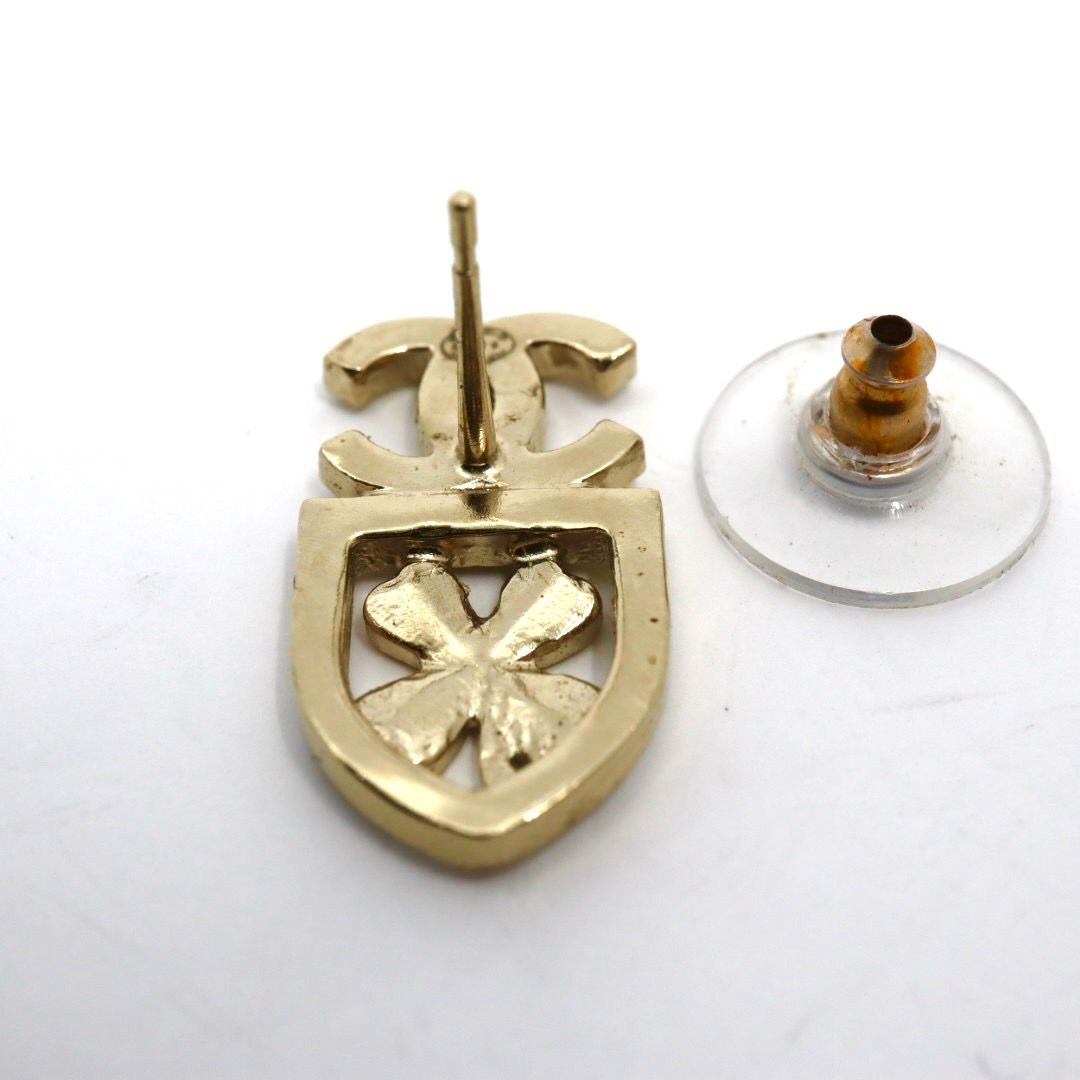 シャネル CHANEL ヴィンテージ ピアス ココマーク クローバー モチーフ ラインストーン ゴールド I 6