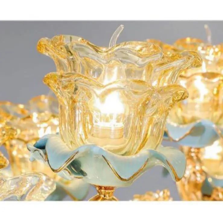 クリスタルガラス 欧風大気青色おしゃれ シャンデリア 6灯14 三色照明モード 白色光 自然光 黄色光は調整 LED電球は付きます