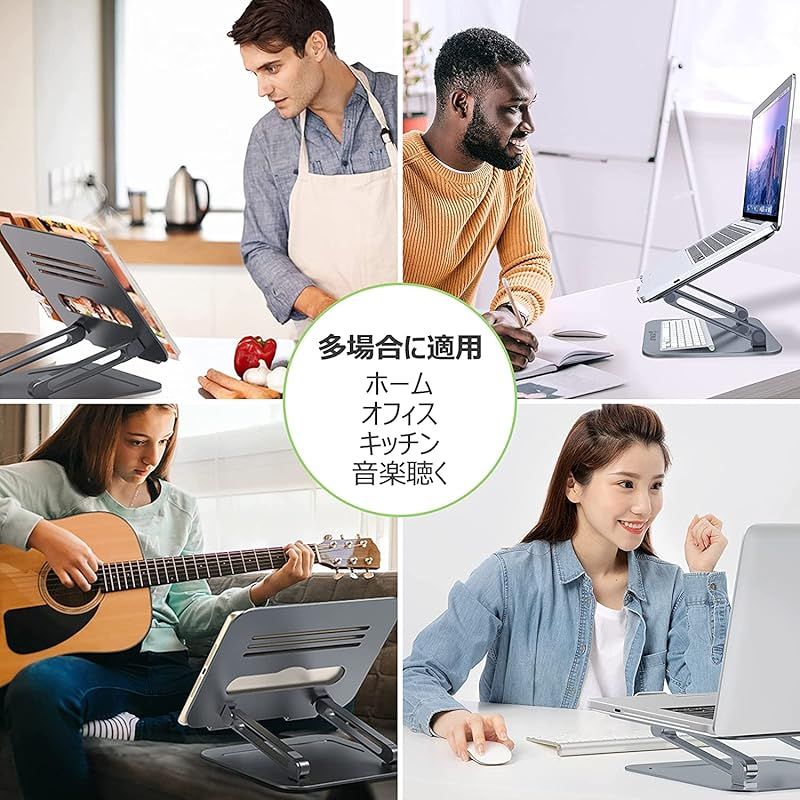 【機能性とデザイン性を両立】スタイリッシュなステンレスカラーと高級感のあるアルミ質感で、インテリアに馴染みやすく、Macbookなどのノートパソコンとの相性も抜群です。ファイルやノート、本にも活用可能で実用性が高い。年齢問わず、学生から年配の方まで使え、在宅勤務、リモート授業、勉強、読書など幅広く活用できます。PC作業で目が疲れやすい、目眩、肩こり、首周りが痛みがち、集中力低下などに心当たりのある方におススメです。Macbook/Macbook Air/ Macbook Proシリーズ/Surface/Surface Proシリーズ/Surface Book/iPad Pro/Sony/HPなどのすべての7-17.3のノートPCやタブレットを幅広くに対応可能です。(注意事項:◆商品写真などは、撮影環境や光の環境によって実際のカラーと見え方か異なる場合があります。商品写真はできる限り現品を再現するよう心掛けておりますが、若干差異が生じる場合がこざいます。予めご了承ください。)