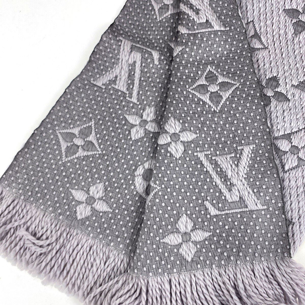 ルイ ヴィトン Louis Vuitton エシャルプ ロゴマニア モノグラム マフラー ウール シルク グリペルル グレー レディース