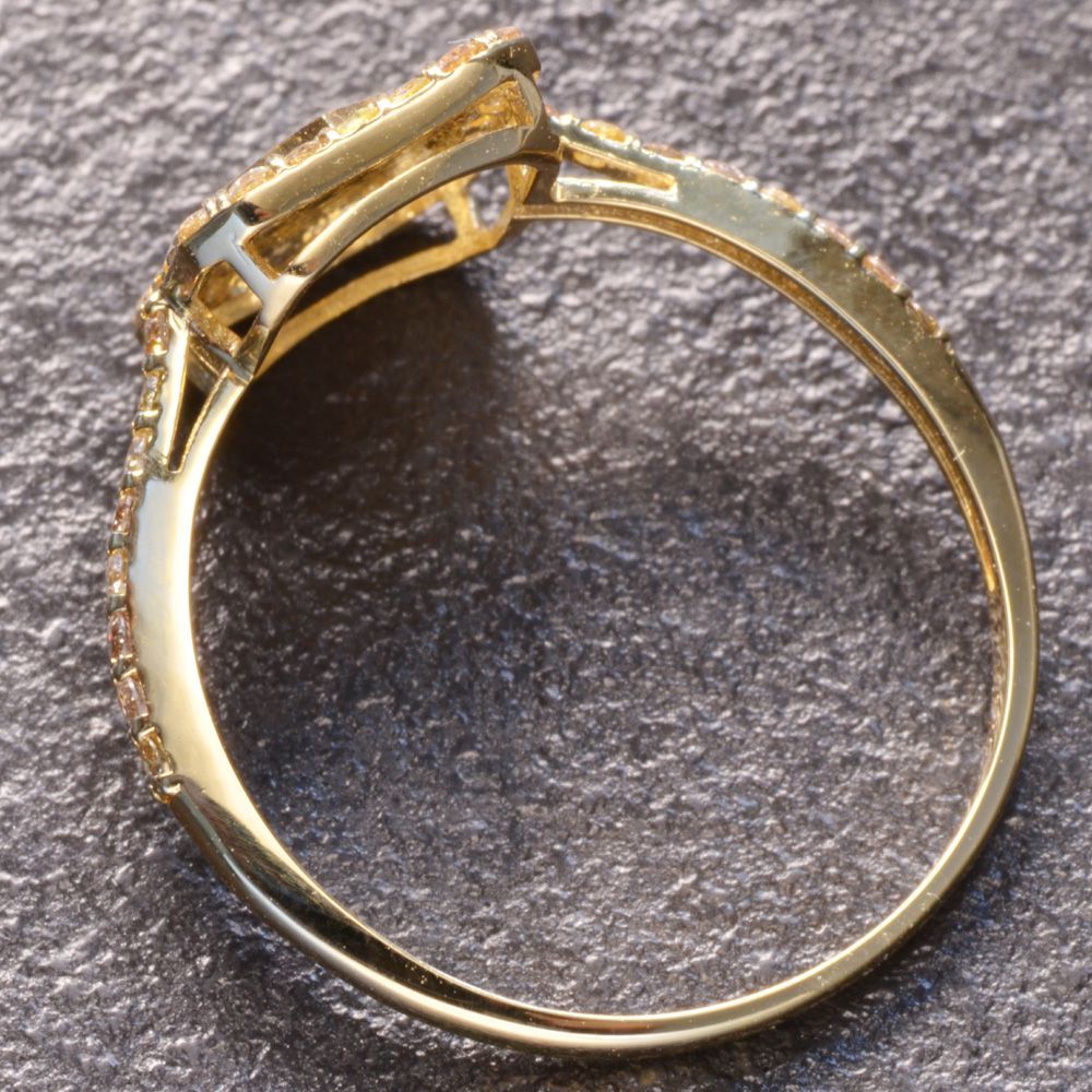 18金を使ったトランプモチーフのリングです。スペードモチーフのカードの淵とリングアームにダイヤモンドを敷き詰めました。無色とブラウン~イエロー系のダイヤを使い分けて配置し遊び心を感じるデザイン。男性はピンキーリングとしての使用がお勧め。女性もお召しになれます。