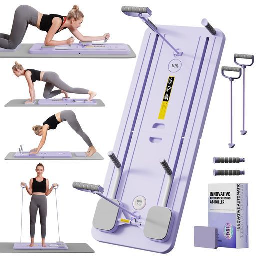UJRホームジム用自動リバウンド付き折りたたみ式腹筋マシン-膝パッド付きコア-腹筋筋力トレーニング器具-腹筋コアトレーナー-プッシュアップボード 淡い紫色