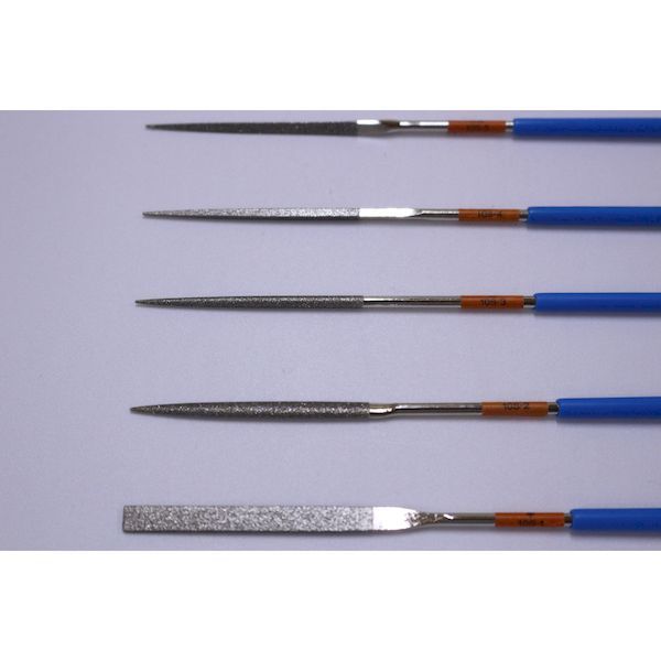 ●超硬合金、焼入鋼、セラミックスなど硬質材料の研削加工に。●研削力に優れたダイヤモンドヤスリ。●精密タイプ(S)は台金に弾性があり、被削材にフィットします。●用途:各種金型の修正、各種刃物研ぎ、セラミックス、超硬合金、その他硬質材の研削加工に。●形状【平・半丸・丸・角・三角】の5本セットです。●【10S-1】:形状/平 ダイヤ部分寸法(約)/6×1.4×55 全長(約):175 粒度#140/170●【10S-2】:形状/半丸 ダイヤ部分寸法(約)/5.5×2×55 全長(約)/175 粒度#140/17