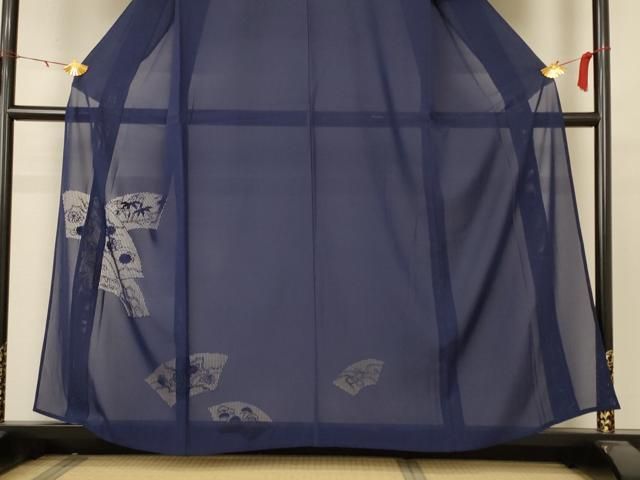 平和屋着物 夏物 色留袖 絽 扇面草花文 青褐色 正絹 jd