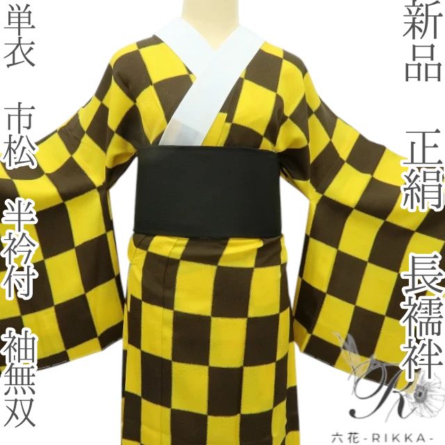 六花-RIKKA- 正絹 単衣 市松 半衿付 袖無双 長襦袢 着物 A 3641
