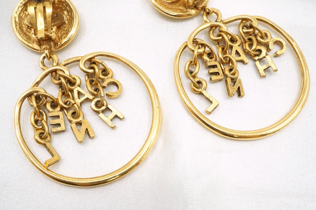 シャネル ヴィンテージ イヤリング ロゴ フープ スイング ラウンド 金 ゴールド アクセサリー CHANEL 3806j