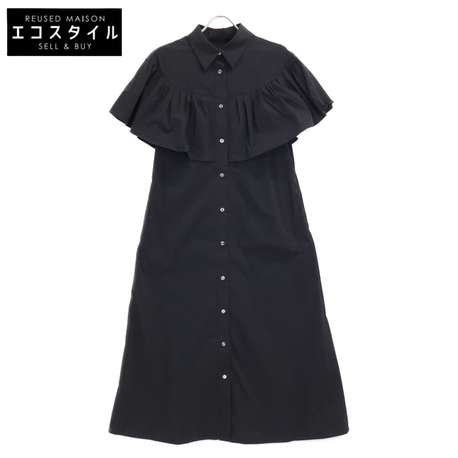 ADORE アドーア 531-2140312 ブラック コットンナイロンギャザーケープシャツドレス 38