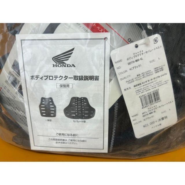 商品名:73586 新品 HONDA ホンダ ボディプロテクターセパレートベスト ブラック SIZE:L 0SYTH-W9R-KL