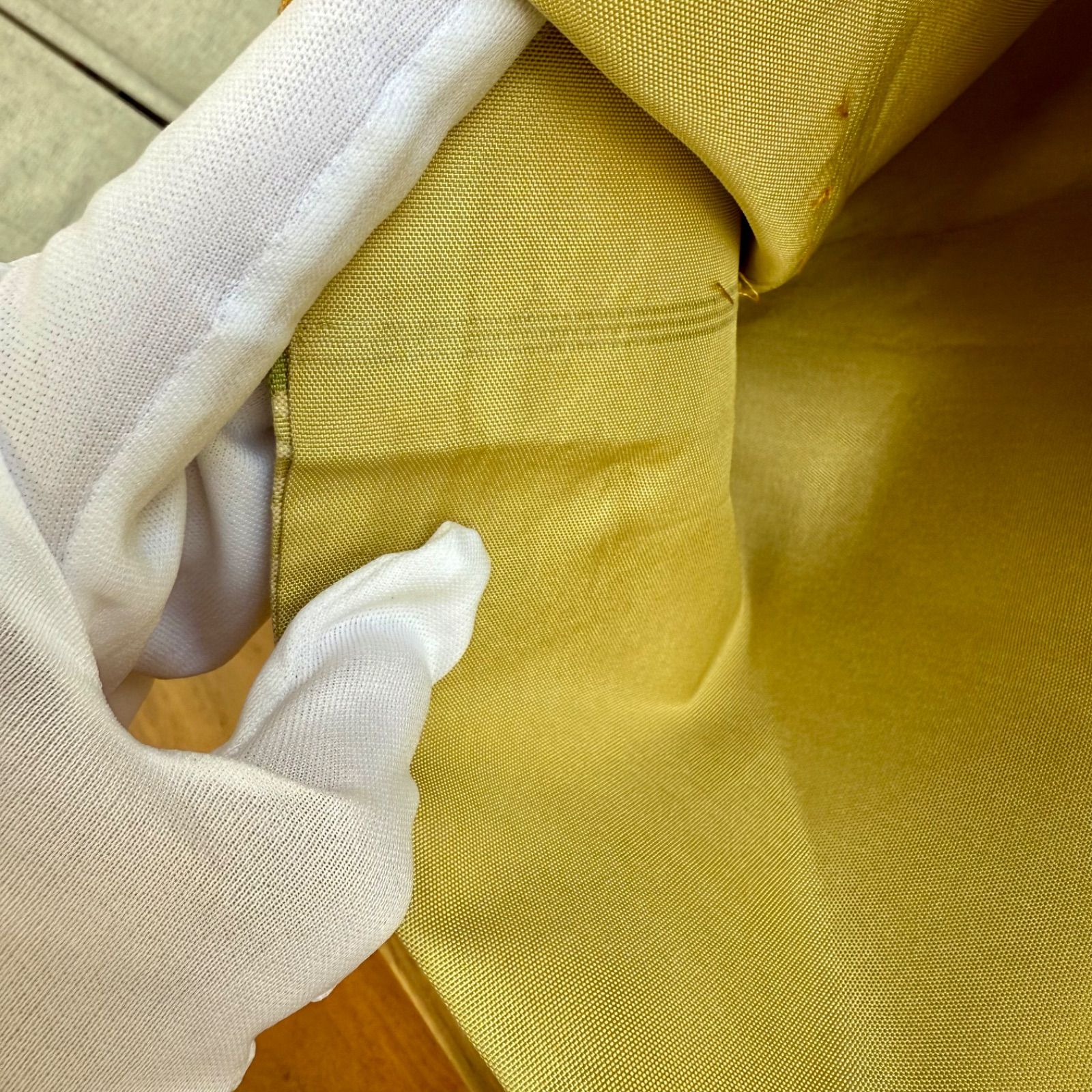 鈍い黄色を感じさせる桑染色に円形の正倉院文様が