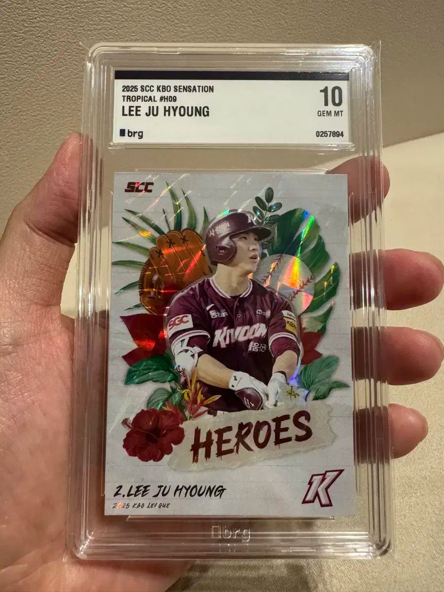 これは2025年のKBO SCCセンセーションを巻き起こしたイ・ジュヒョンのトロピカルグレードのカードです。