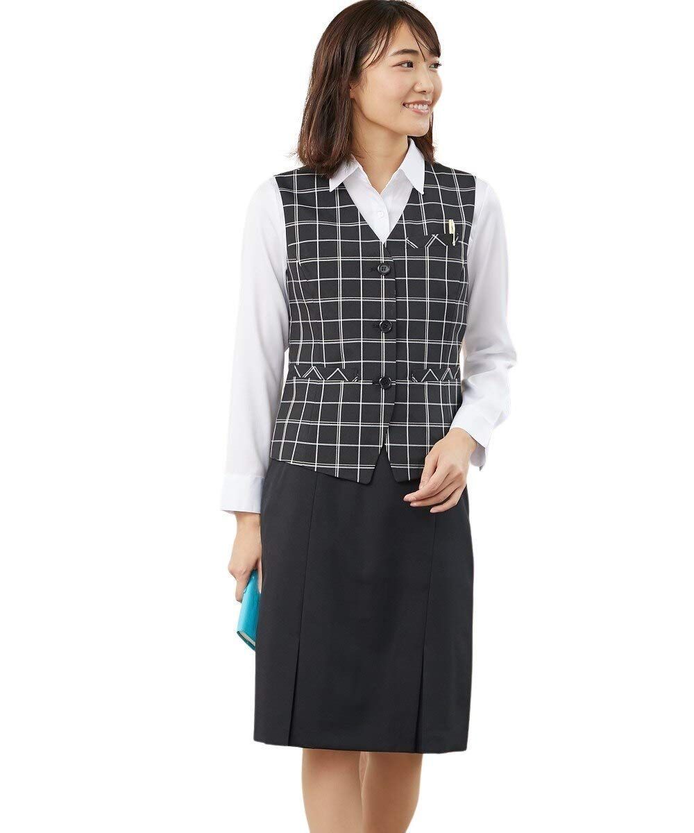 [nissen(ニッセン)] 事務服 オフィス 制服 ベスト スーツ 洗える 上下 セット ( ボックス プリーツ スカート ポケットあり ) レディース 抗菌消臭