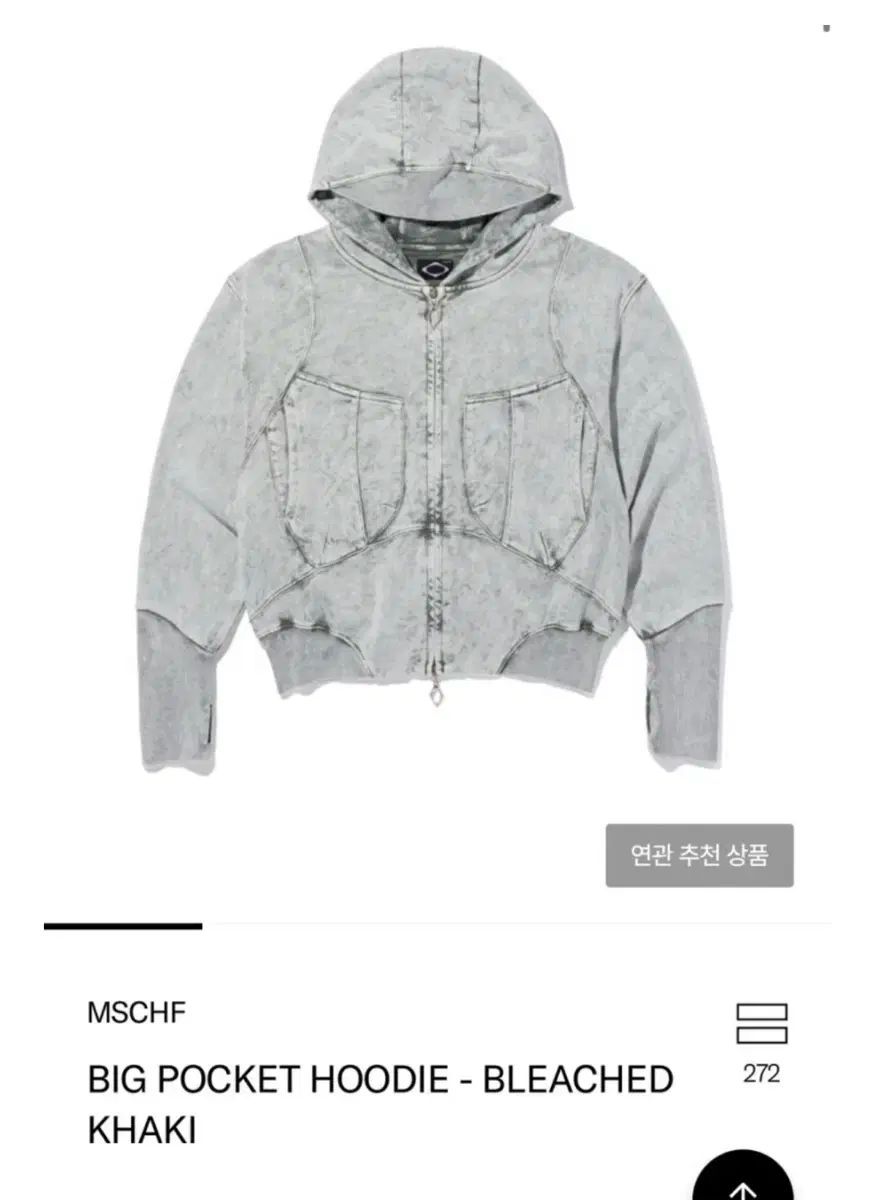 ミスチーフ ビッグポケット ブリーチド フーディー フードジップアップ カーキ