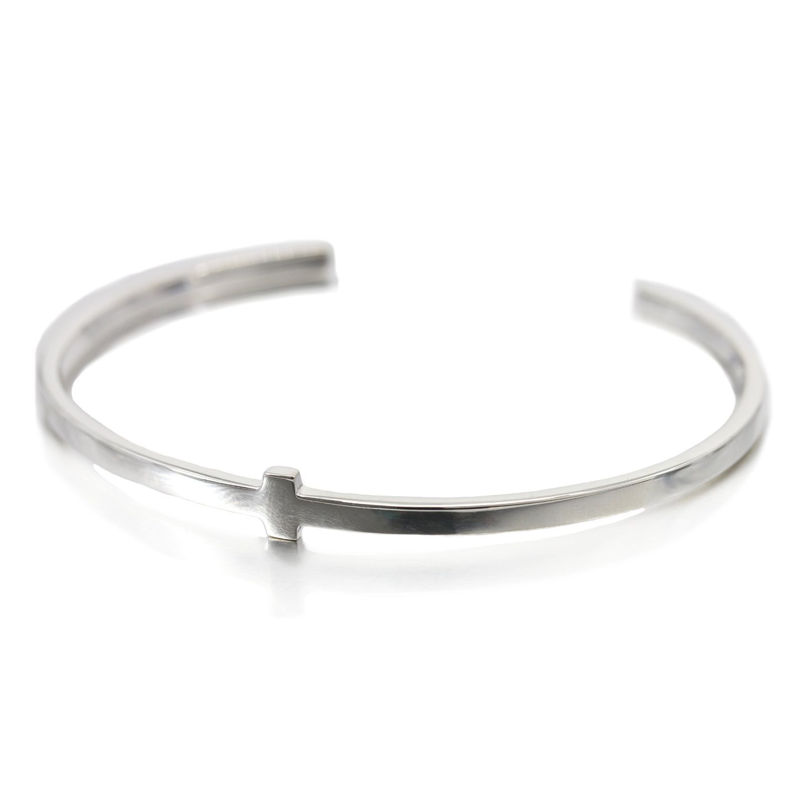 光の屈折を美しく見せるシンプルな十字を中央に配置したシルバー925製バングル