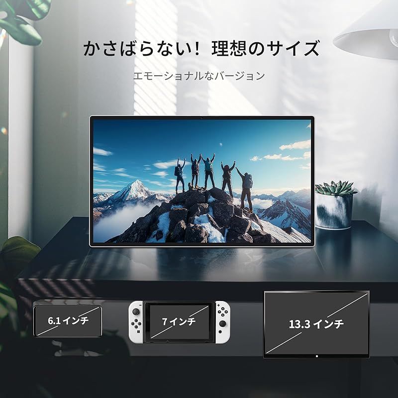 【様々なシーンに対応 |持ち運びも使用も簡単】片手でも持ち運びやすい専用ハンドルを装備。通勤通学の電車内で片手で持ちながらニュースを読んだり、出張で空港や会議室を素早く通過する際にスムーズに操作できます。通勤バッグに忍ばせておけば保護にもなり、使用時にはスタンディングも可能です。 VESA規格の壁掛けブラケットをキッチンに取り付ければ、調理手順を大画面でわかりやすく表示する電子レシピブックとしても使えます。 ベッドルームにBluetoothスピーカーと一緒に壁掛けすれば、25インチのスクリーンで素晴らしい視聴体験ができるプライベート・シネマに早変わります。