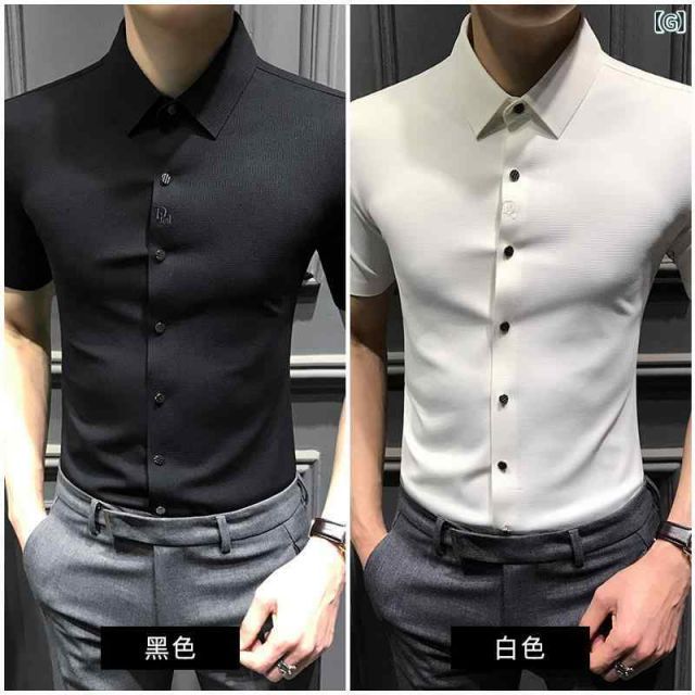 商品名:[L]メンズ ファッション 服 男性用 オシャレ シンプル 大人 かっこいい 大きいサイズ ストリート 紳士服 夏 半袖 シャツ スタイル ノー アイロン 刺繍 スリム 半袖 シャツ ハイエンド カジュアル ビジネス シャツ